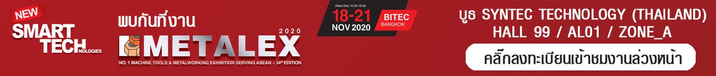งานจัดแสดงสินค้า Metalex 2020 SYNTEX x TTL ENGINEERING SYSTEM โดยมีสินค้ามากมายหลากหลายรายการ อาทิ หุ่นยนต์เชื่อม รุ่น C series 10 KG (long arm type 1.6 m) , คอนโทรลเลอร์ (CNC Controller Series ) , เซอร์โวมอเตอร์ และอีกมากมาย จัดขึ้น ณ ศูนย์นิทรรศการและการประชุมไบเทค บางนา, กรุงเทพฯ ระหว่างวันที่ 18 – 21 พฤศจิกายน 2563