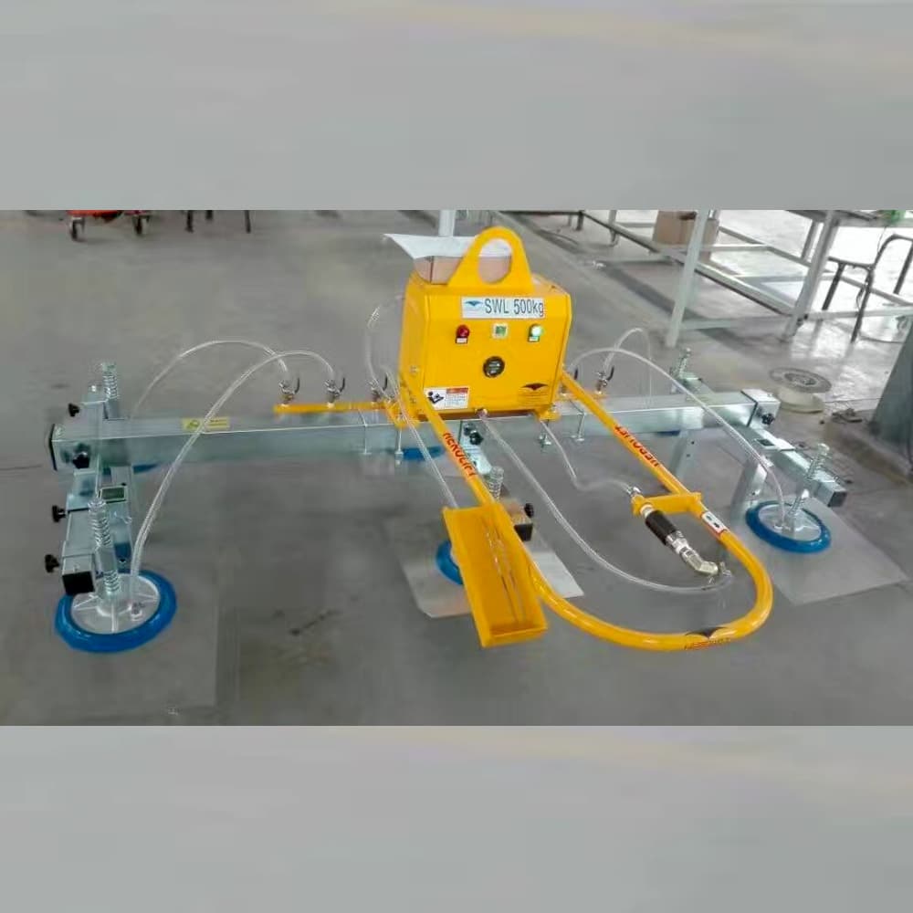 To press the power button, the pump is working, Push forward the hand slide-valve, Suction pad began to automatic suction plate. when the vacuum degree reaches requirements more than -60% degrees, meet the suction conditions, the green light is lit up, The warning stop buzzer, Lifting ready.