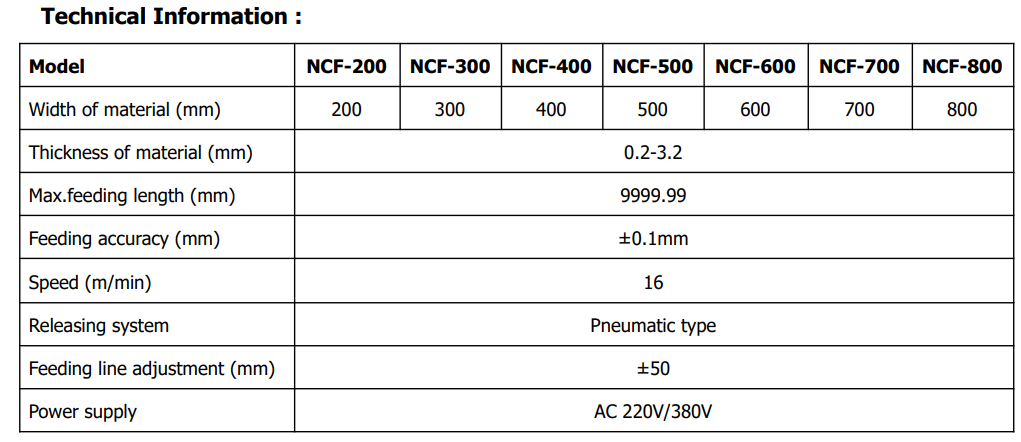 It can feeds sheet metal coil material thickness up to 6.0mm, with max. feeding speed 20m/min.