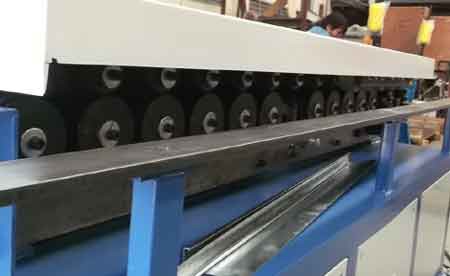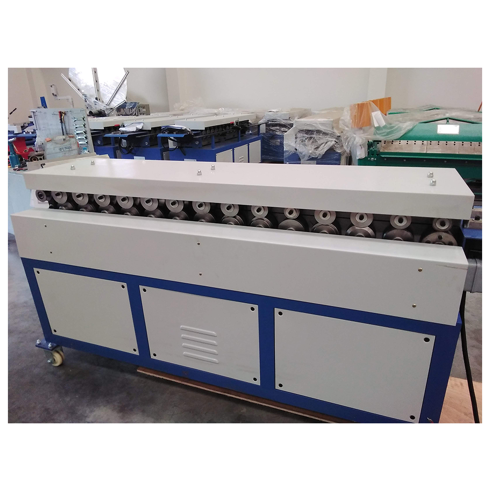 The machine applies both sides feeding and simultaneously shaping work mode, one side forming and one side forming is for installing hooks. Apply shared-plate flange, therefore, the rectangle ductwork flange can be fast processed. It features low making cost and high installing efficiency, convenient for standard and batches of production. It is suitable for making rectangle wind pipe with big section.